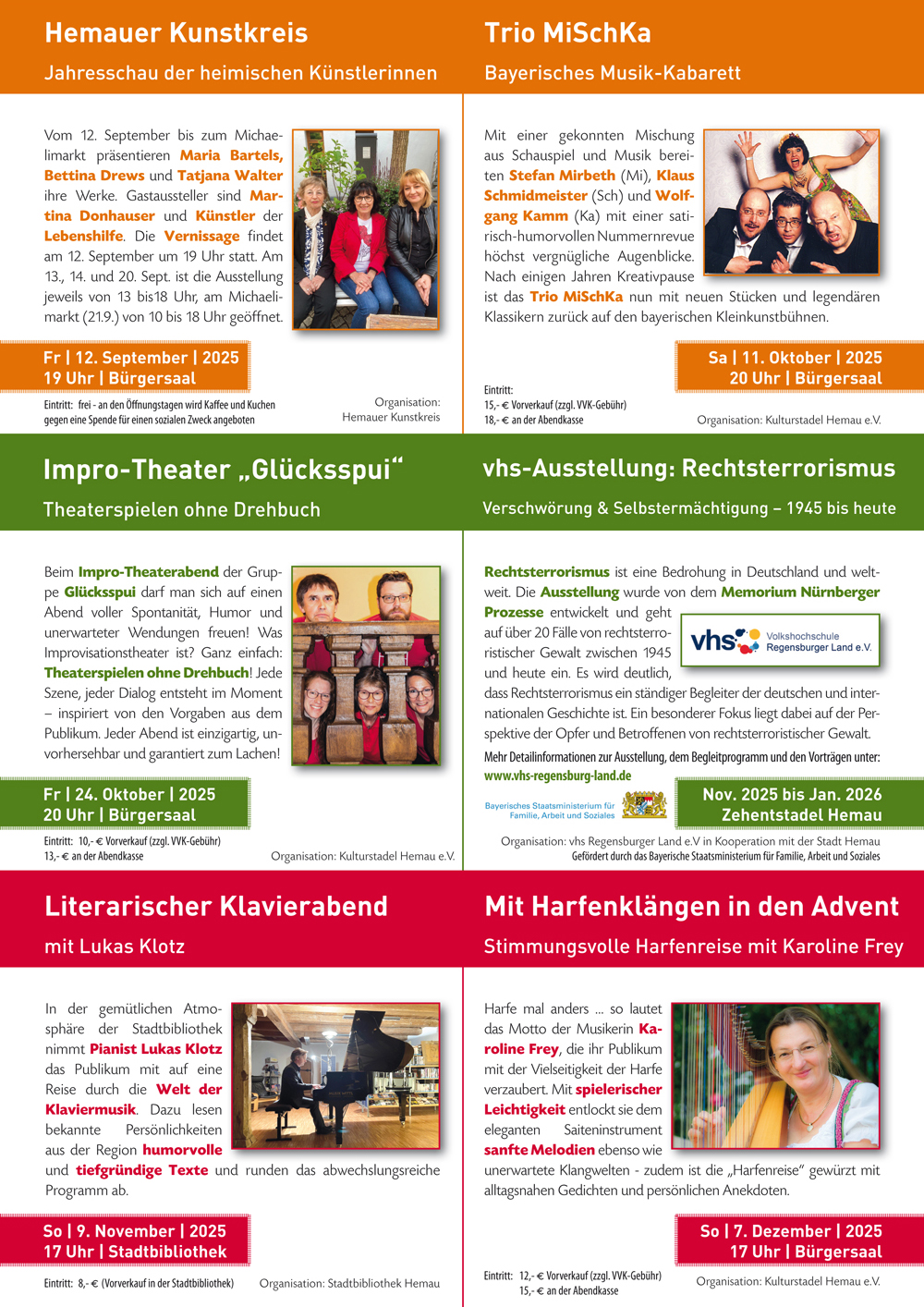 … für Hemau und den Tangrintel ein regelmäßiges und dabei möglichst vielseitiges Kulturprogramm auf die Beine zu stellen.